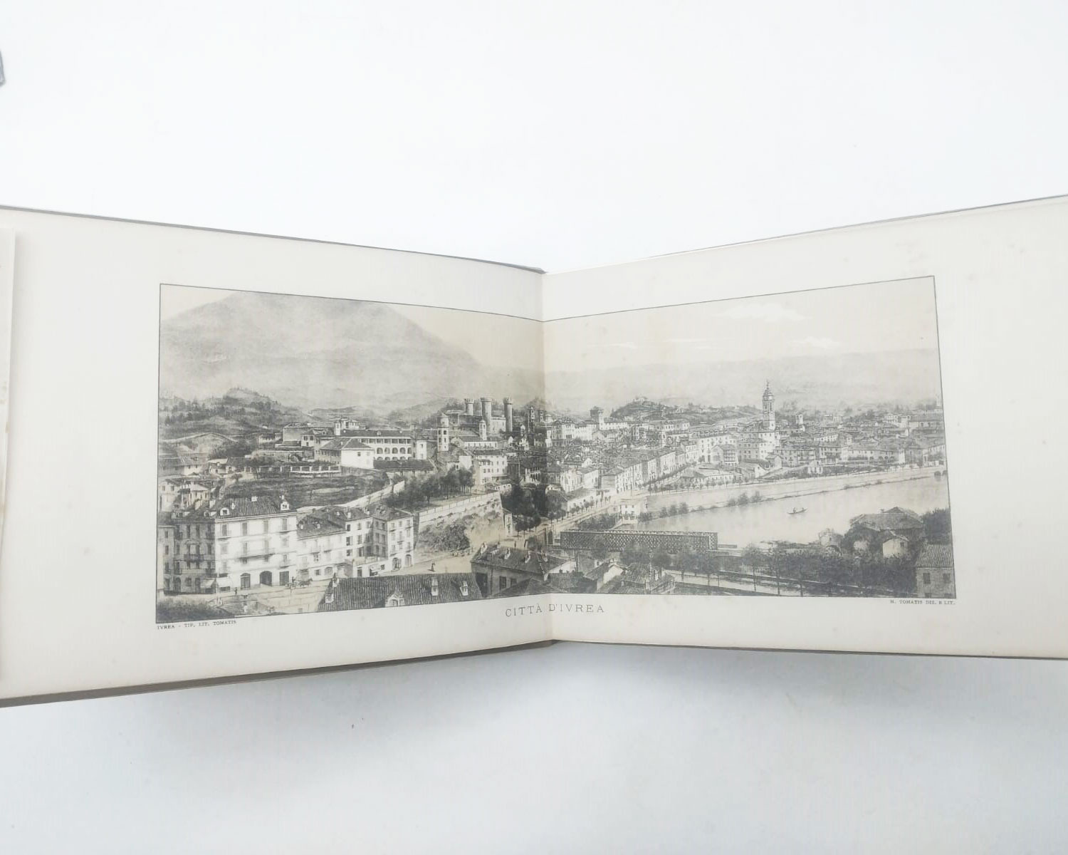 La città d’Ivrea e i suoi monumenti Ivrea, Tipo lit. A. Tomatis, 1894 In 8 obl. cm 24,5 x 18, pp. 40 con 11 tavole fuori testo in litografia a 2 colori delle quali 1 a doppia pagina, con veline di protezione. Tutta tela editoriale con titoli e impressioni ai piatti. Edizione originale di questo … Continue reading →Novità dalla libreria antiquaria Coenobium